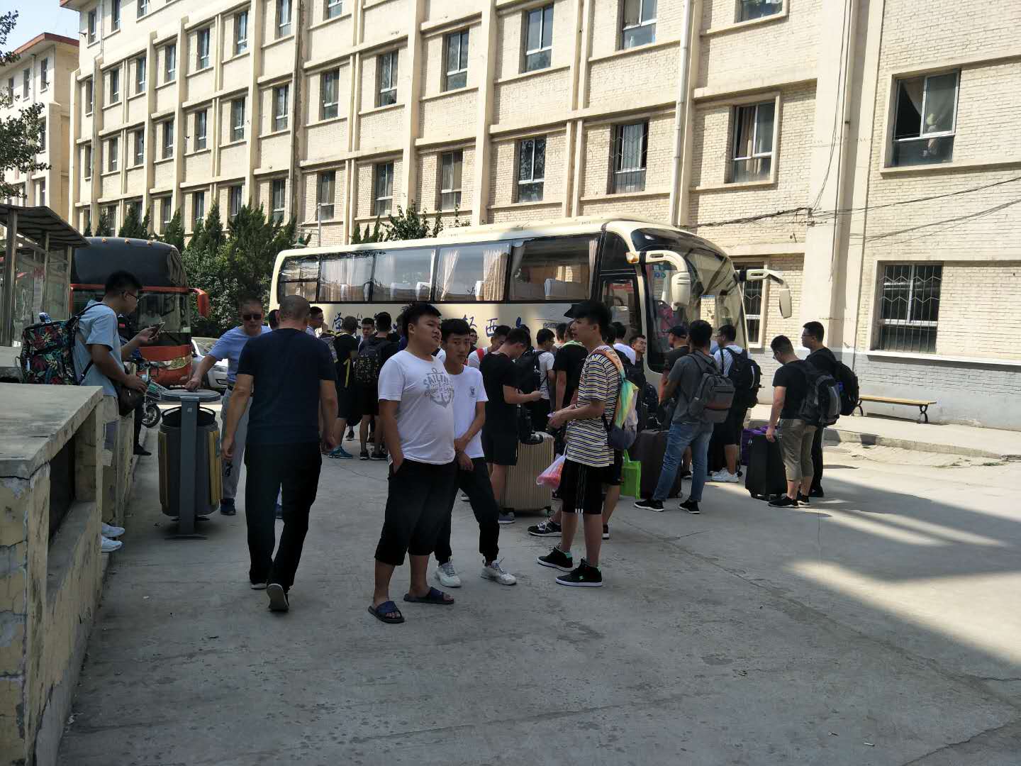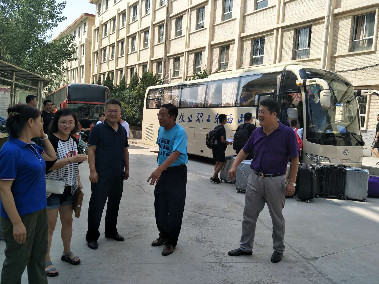 2018年8月28日机电系、信息系275名学生前往昆山丘钛科技集团进行顶岗实习,院党委书记岳高社,院长任利成亲自欢送学生上车。分管教学的副院长行建海带队,教务处处长武志梅、信息系副主任张小莉一行三人送学生进入丘钛科技集团进行实习实践。